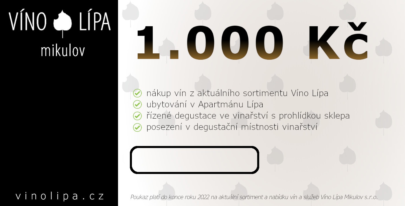 Dárkový poukaz v hodnotě 1 000 Kč množství
