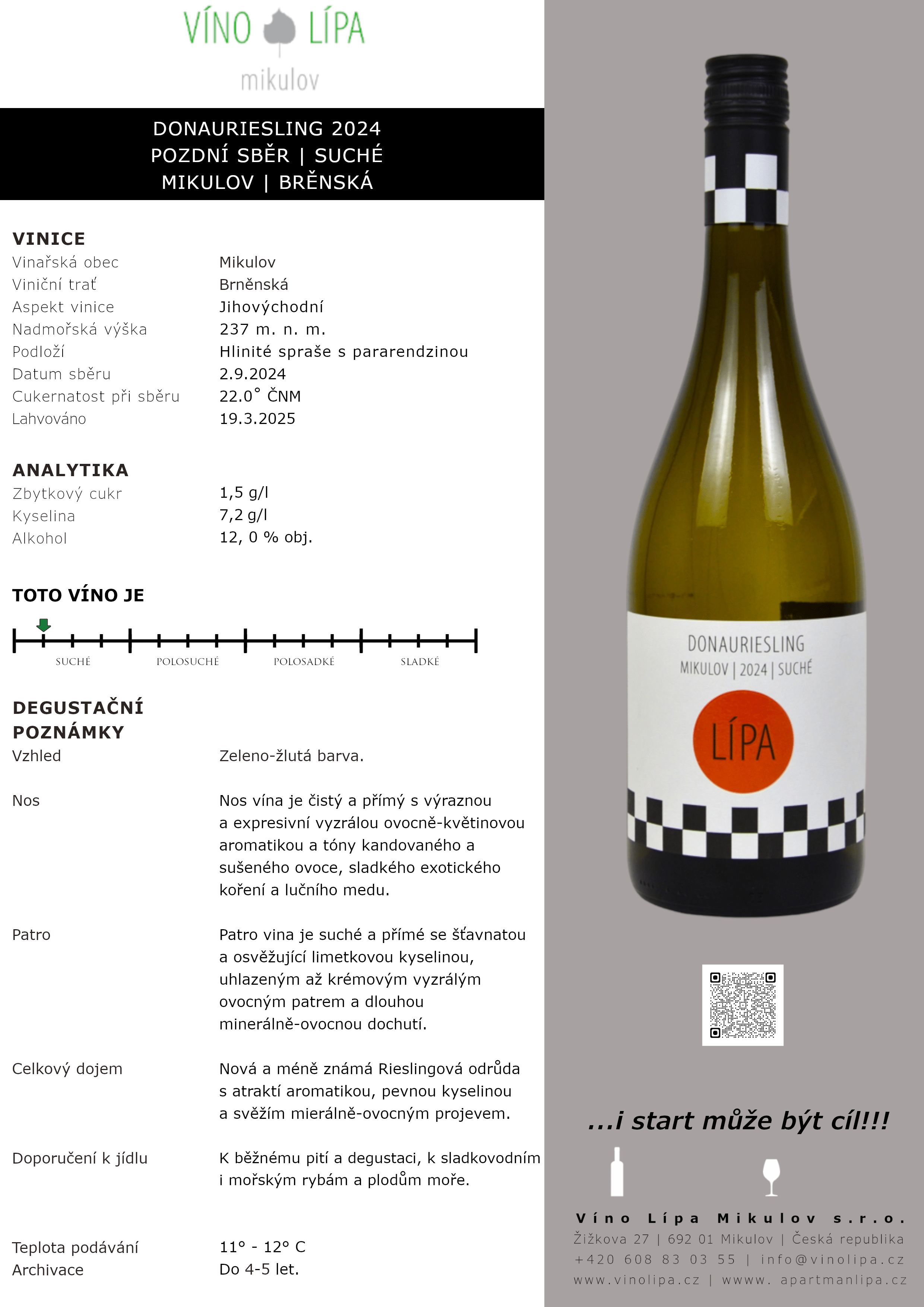 Víno s přívlastkem, Pozdní sběr, suché, 2024, Oblast Morava, Vinařská obec Mikulov, viniční trať Brněnská