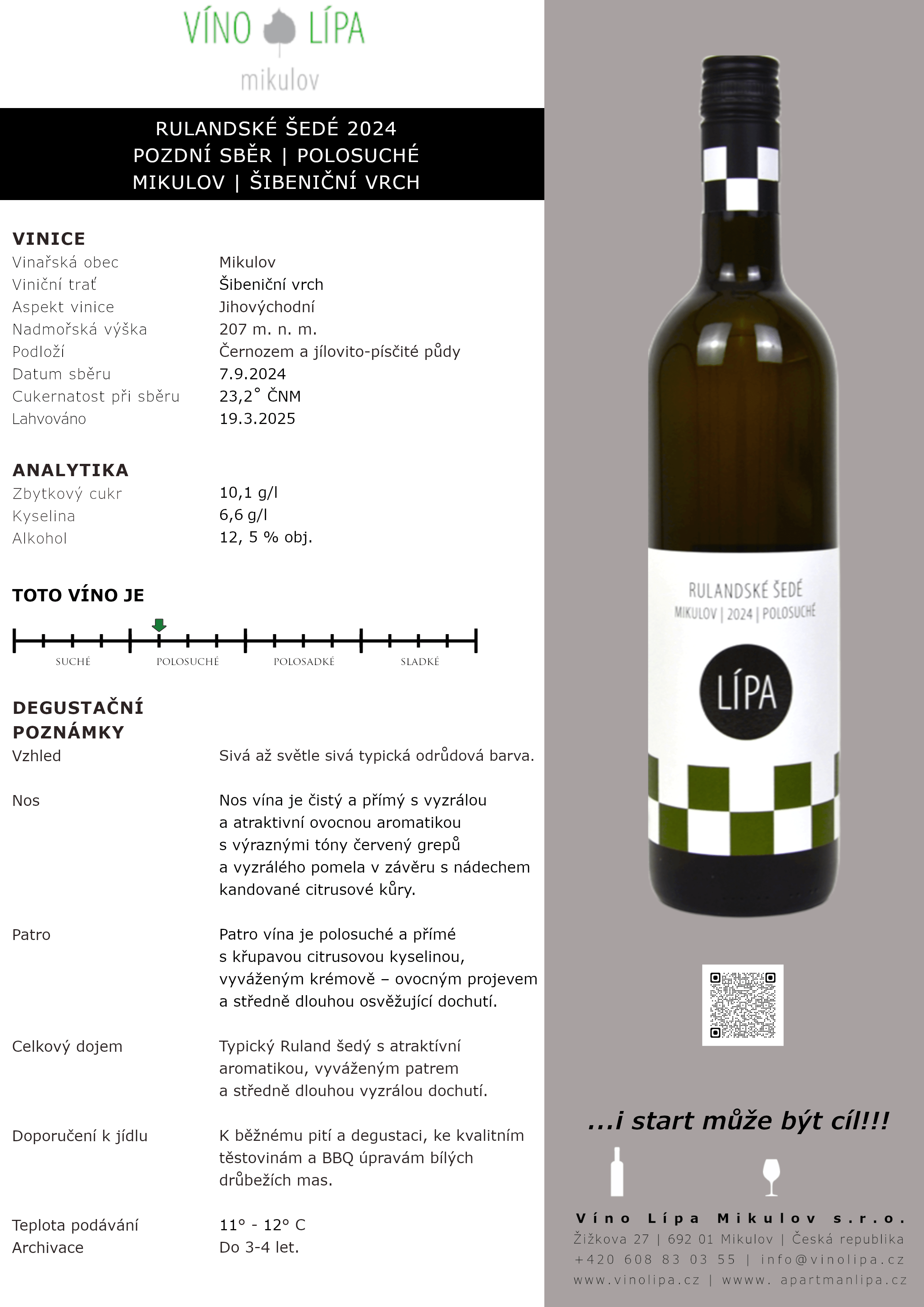 Víno s přívlastkem, Pozdní sběr, polosuché, 2024, Oblast Morava, Vinařská obec Mikulov, viniční trať, Šibeniční vrch