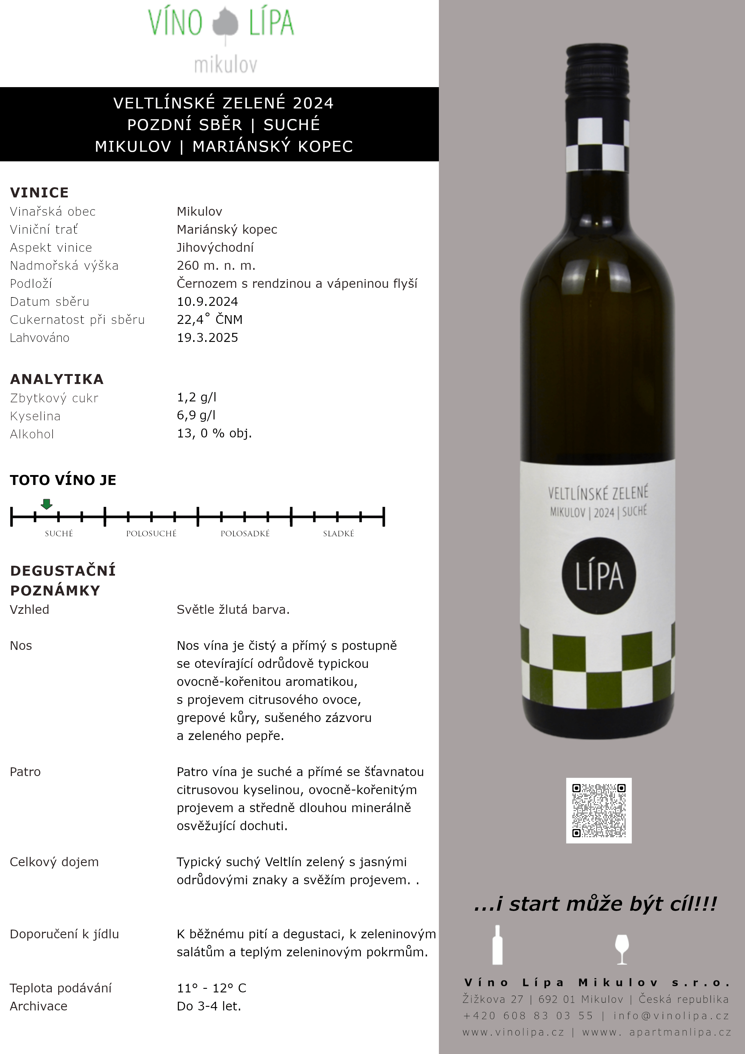 Veltlínské zelené, víno s přívlastkem, suché 2024